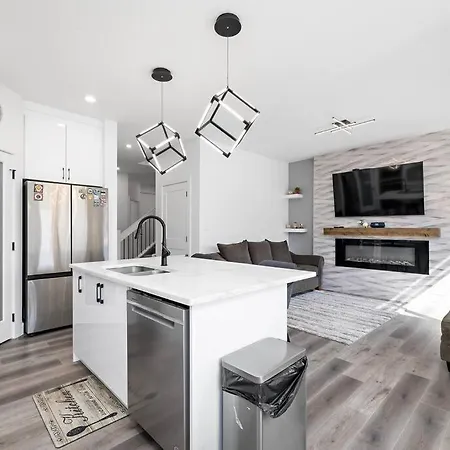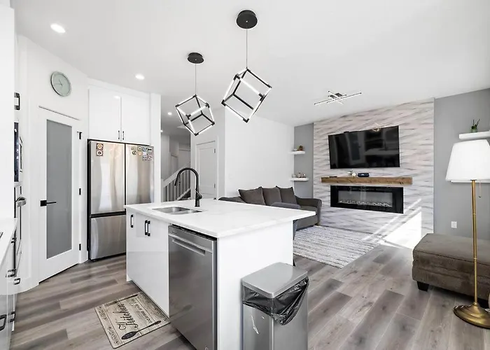 Die The Happy Place - Luxurious, Cozy And Modern Home With 4 Bedroom Air-Condition, Netflix, Free Parking Close To Airport And West Edmonton Mall verfügt über eine voll ausgestattete Küche sowie einen Essbereich für die Gäste. Zur Selbstverpflegung stehen auch ein Herd und ein Geschirrspüler zur Verfügung. Von dieser Villa sind es 26 Minuten mit dem Auto zum Flughafen Edmonton.